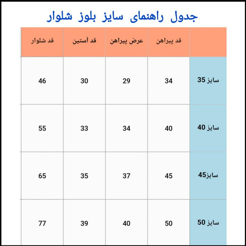 سایز بندی 35و40و45و50